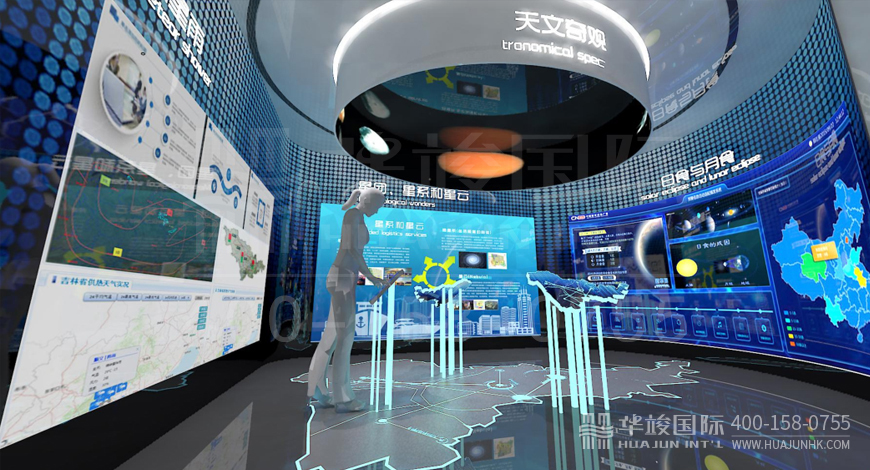 該館以“感知宇宙”“認(rèn)知宇宙”“探索宇宙”為主題,50余個展項利用互動投影、懸浮投影、物體跟蹤、人體捕捉、體感互動、VR等高科技手段展示藏地的神奇,揭示宇宙的奧秘。這些現(xiàn)代化的技術(shù),華竣國際都輕車熟路地運用在我們打造過的眾多案例中。