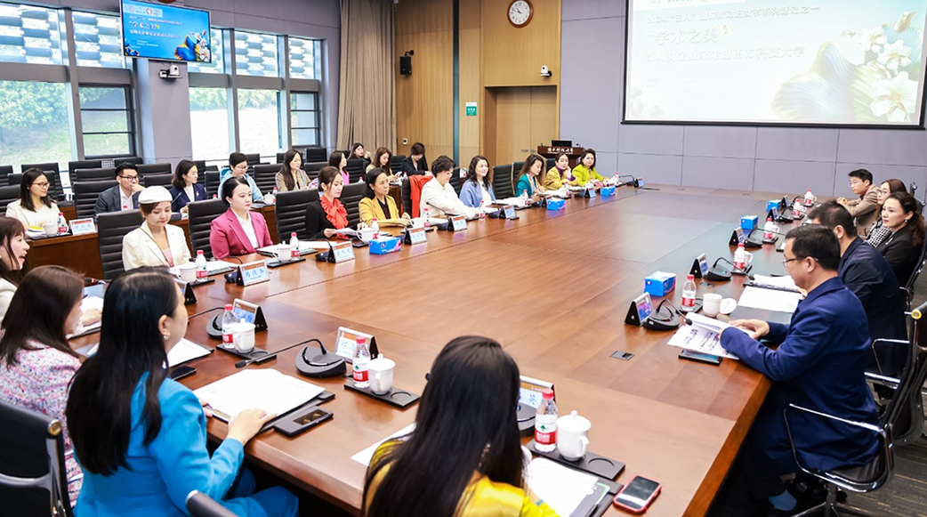 隨后,南方科技大學黨委書記姜虹、深商會常務會長林慧,與雄帝科技、西湖股份、光韻達光電、兆馳股份、錦江酒店集團、華竣數創等優秀企業的二十余位巾幗企業家,圍繞南科大的辦學成果、人工智能時代下的女性成長展開座談討論。